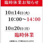 10/20(月)は臨時休業